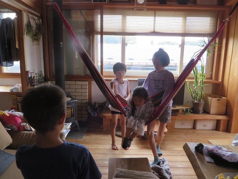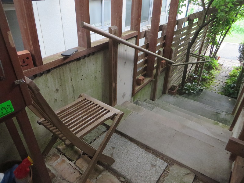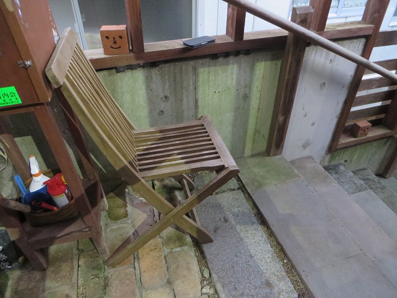私の夏場の迎え待ち場所です。この椅子に座っていると気持ちいい風に包まれます。
