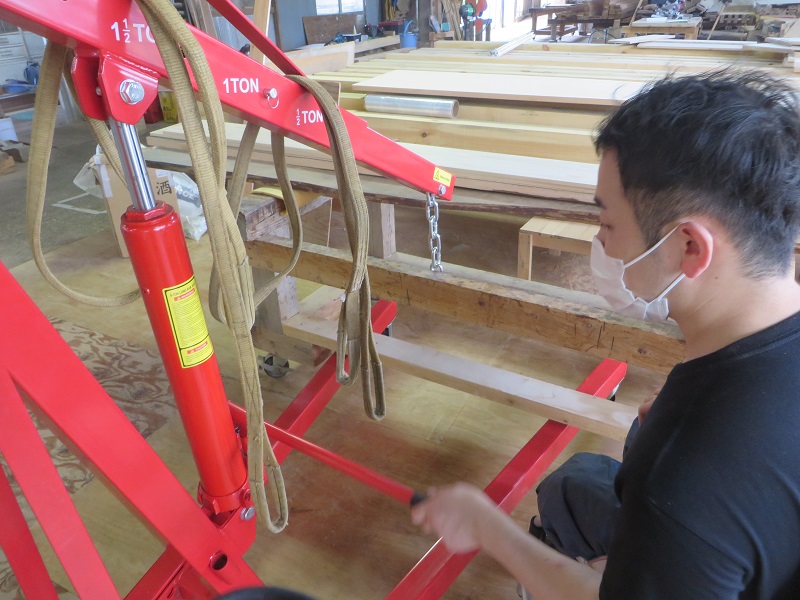 車椅子大工の新たな仕事墨付けが予定されているので、大きな材を持ち上げられるようにエンジンクレーンを購入してみました。