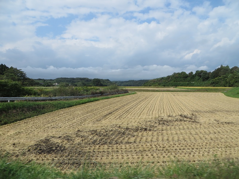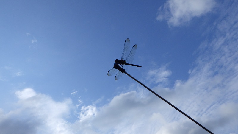 何時もの通勤路で写す田圃と岩手山の風景が稲刈り後へと変わりました。秋の風景です。それはトンボもそうですね。