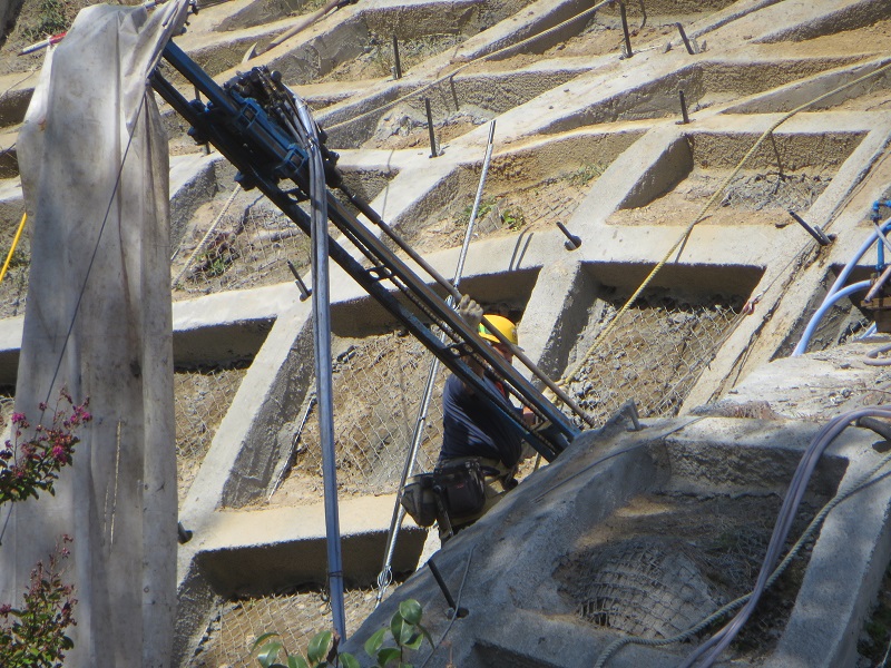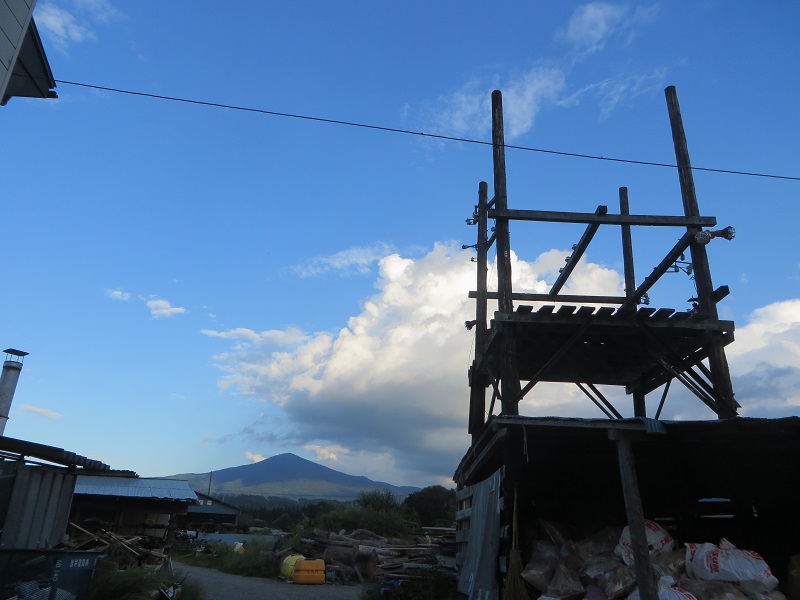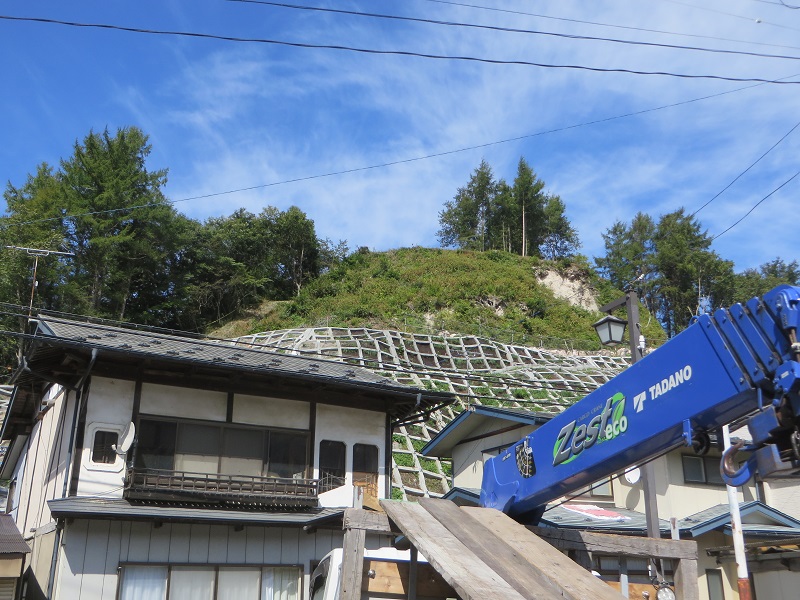 浄法寺の新築現場の真正面の山では法面工事がまだ続いていました。