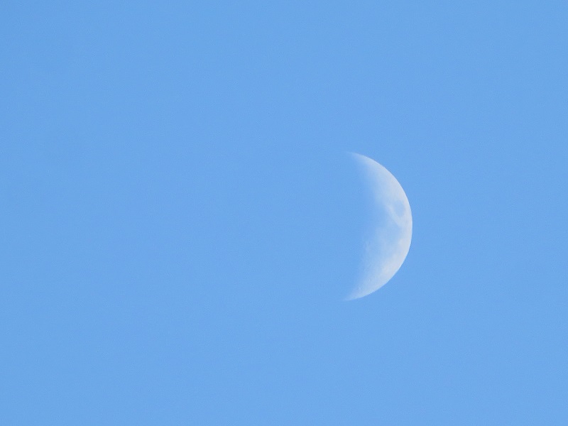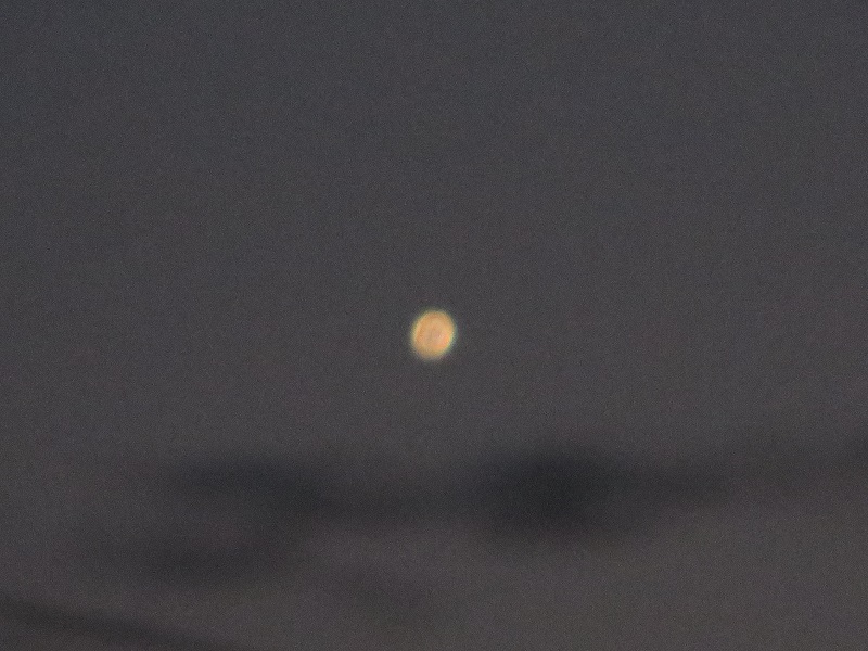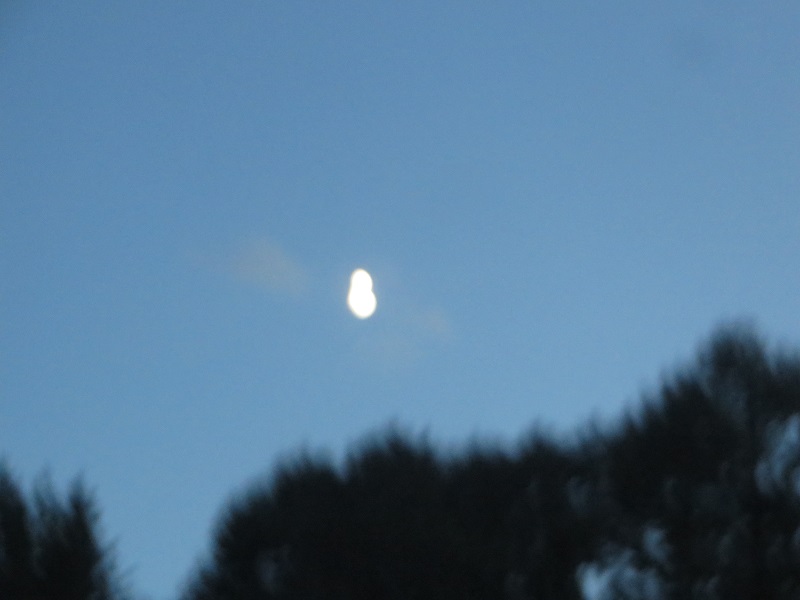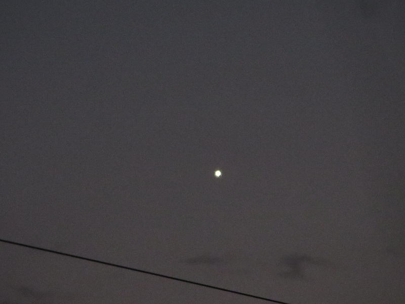昨日の夕暮れの空、三日月と金星を写して見たのですが、金星が真ん丸でした。