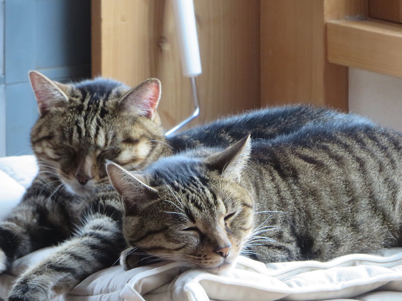 普段は喧嘩しているのですが、時折こうして仲良く寝ています。