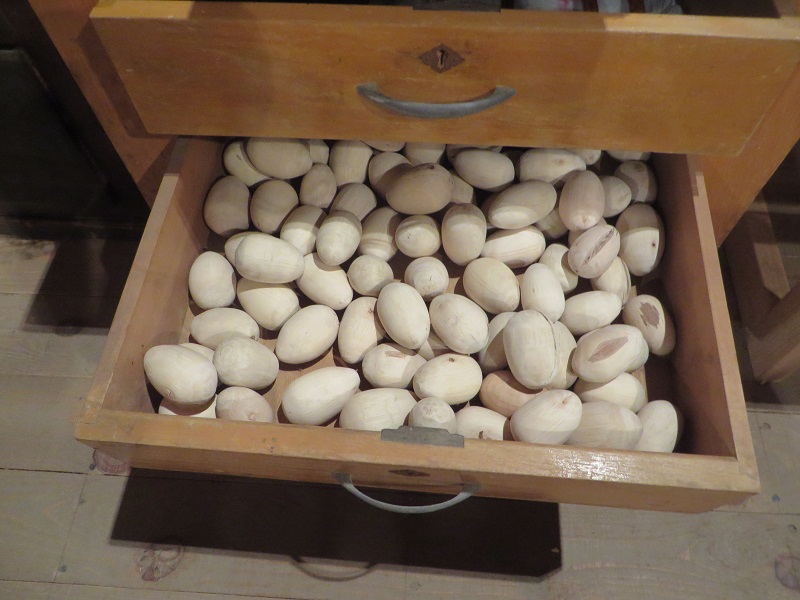 依然造り置いた木の玉子です。アケビの様に割れてきてしまいました。