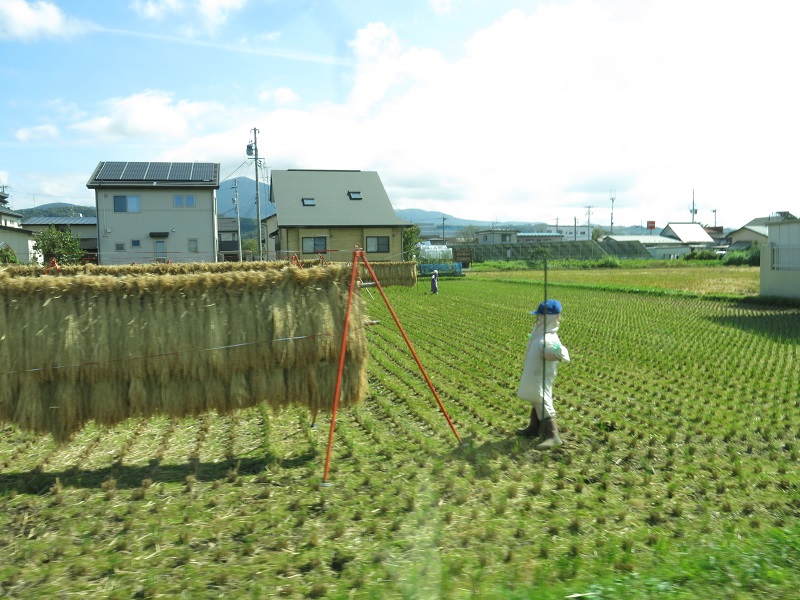 稲刈りシーズンですが、案山子の姿も働く人の姿も同じように印象的です。
