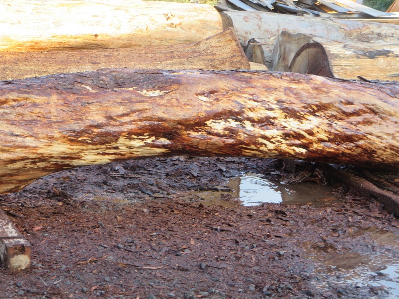 先日運び込まれたご神木の樹皮を水圧バーカーで剥がしました。