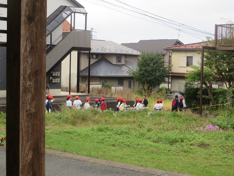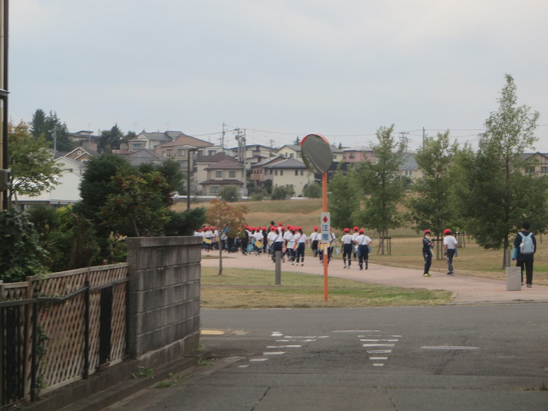 小学生の集団が自宅前から高松公園へと歩いていて、持ち物を見ると写生会の様でした。