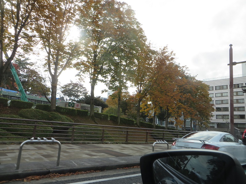 昨日、盛岡城跡公園前を車で通ると紅葉が始まっていました。