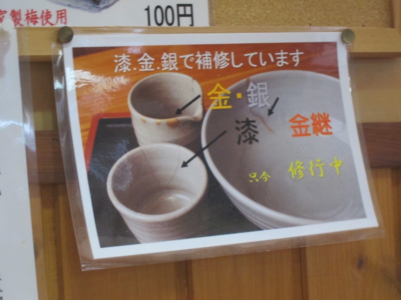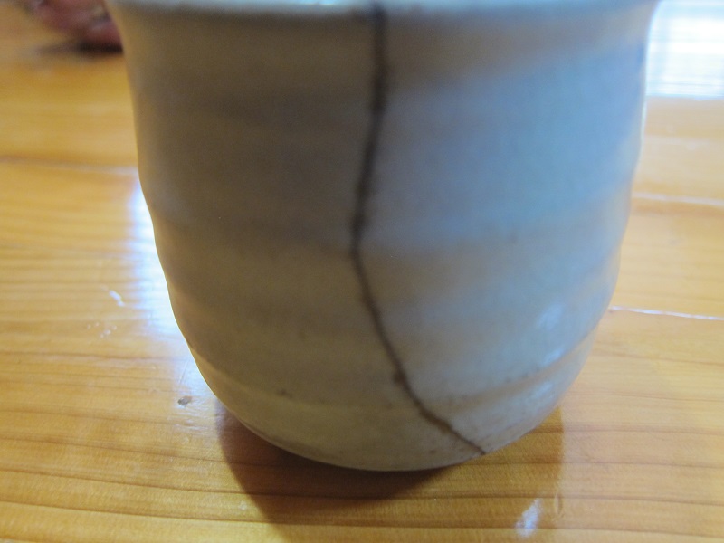 あるお蕎麦屋さんの湯飲み茶わんが金継ぎされていました。