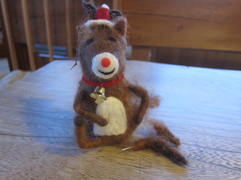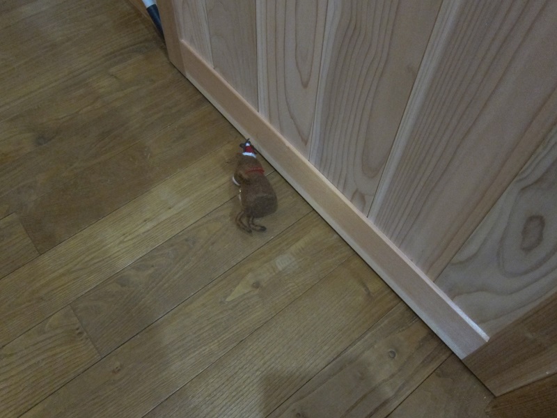 リビングのテレビ横にいた筈のトナカイフェルト人形が何故か1階の廊下に?