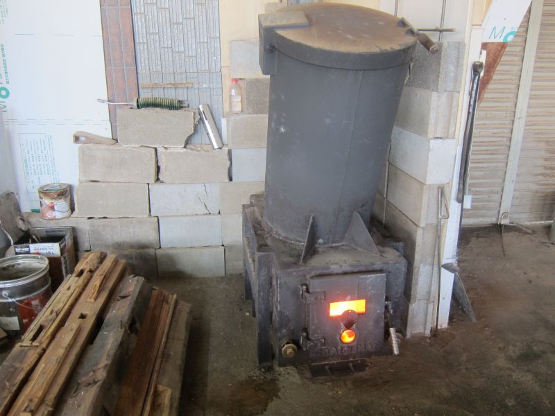 大工作業場の薪ストーブは、その名もゴロン太です。とても暖かいです。長い解体材も燃やせるのでとても重宝しています。