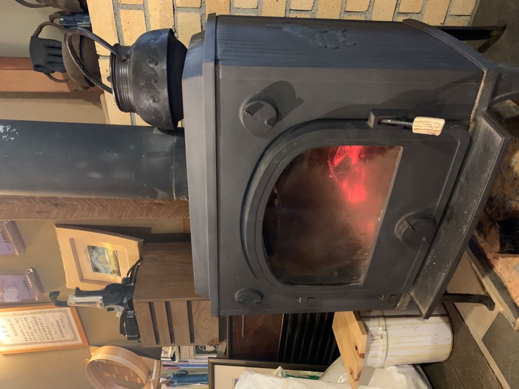 事務所では薪ストーブで暖かく過ごしています。