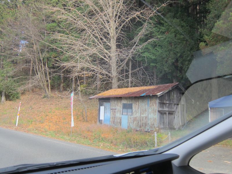 道路端の山小屋に積もったイチョウの落ち葉が色褪せましたね。