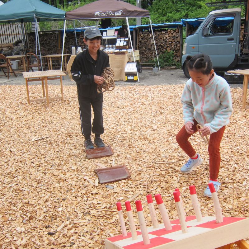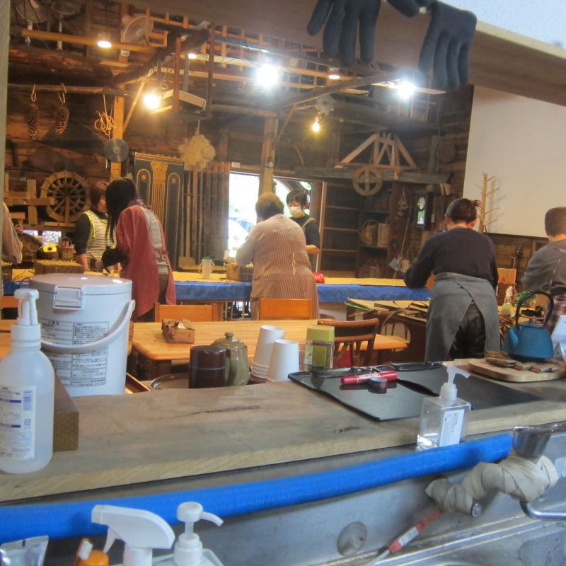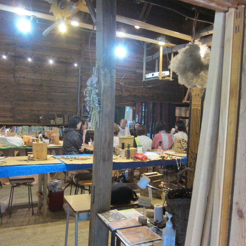 籠編み教室は冬休みが終わり春から再開されています。樹皮を剥かれた山ブドウの弦を丸めて間投げを造りました。