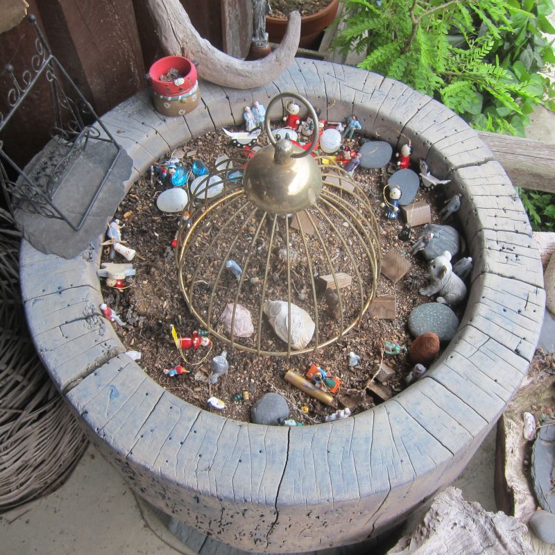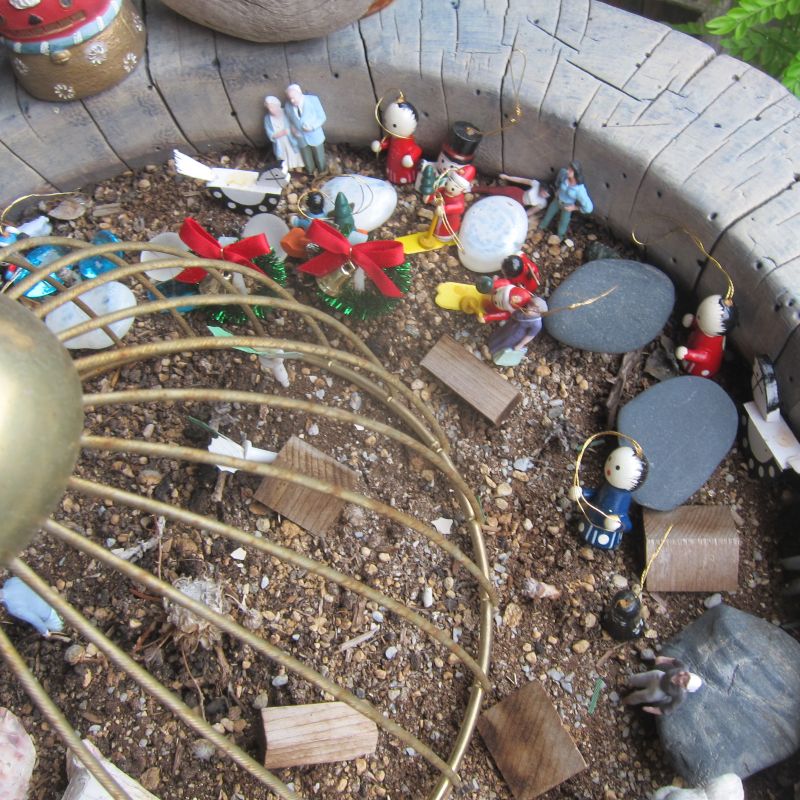サンタさん無料でもさばけず残りまして、小さな臼の庭に居てもらうことにしました。