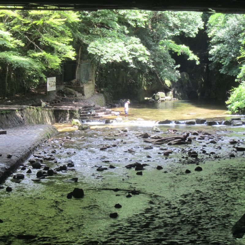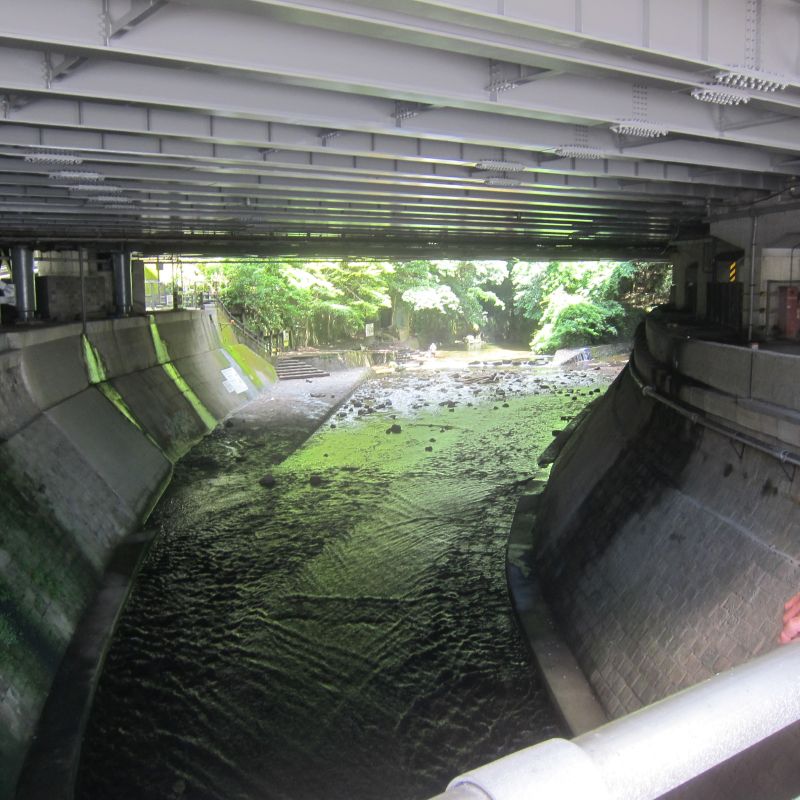 新神戸駅下を流れる川で遊ぶ人たちが居ました。良い風景でした。