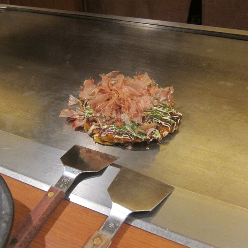 大阪の夜を散策してふらりと入ったのはお好み焼き店です。