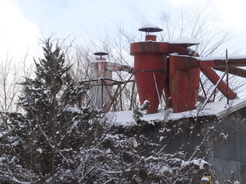 集塵機の上にも雪の帽子が見えます。でもこここは稼働していませんので、今年は取り外したいと思います。