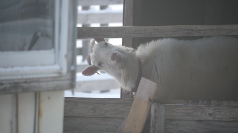 ヤギの横向き画像と餌やりです。