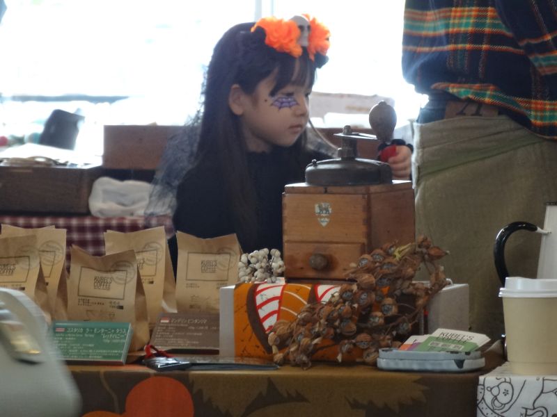 ビッグルーフのイベント会場でコーヒーを飲んでくつろぎました。お店のマドンナです。