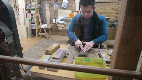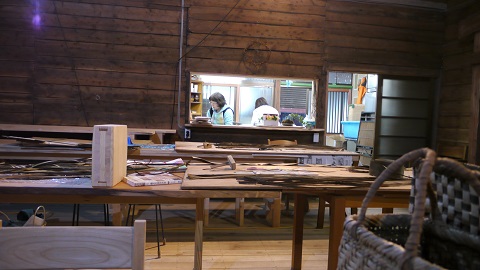好摩の板倉活用が随分と進化してきました。今回は木の皮や弦を利用した籠作り勉強会です。女子会の賑やかな会場の横では、ようへいが静かにしごとしていました。