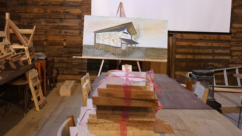 この手前の端材は、明日の小学生たちの木工用の端材です。準備万端でした。