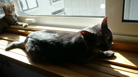 ひたなぼっこして、気持ちよさそうな猫たちです。