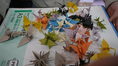 素敵な折鶴が事務所の玄関カウンターに置かれています。手を合わせるのは祈りの原型ですが、こうして鶴を折りながらの願いも祈りの本質になるのではないかと思います。これは栗城のお兄さんが折ったものとの事です。