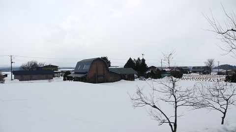これもまた、居久根に囲まれた風景です。田畑が強風から守られて、自家消費用の食料は採れているのだと思うと、自分では出来ないくせに羨ましく思います。