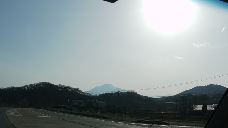 岩手町の改装現場からの戻り道での景色です。岩手山の角が見えるみたいです。