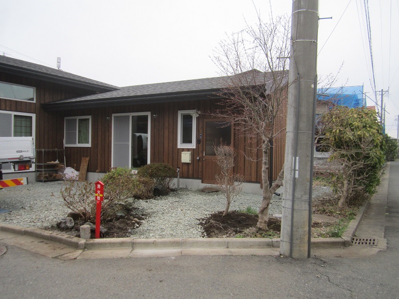 春完成した猫と暮らす家のお庭に木を運んで植え込みさせていただきました。