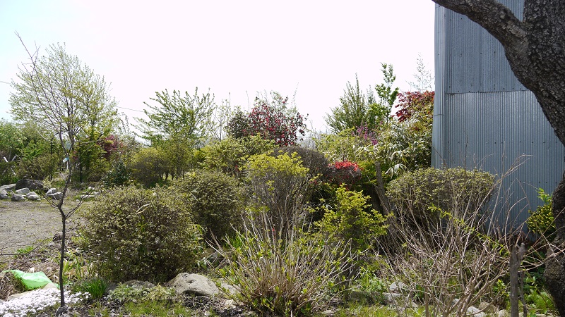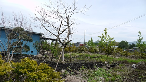 新緑が映える好摩の庭です。柿の木も無事根付いてくれそうです。