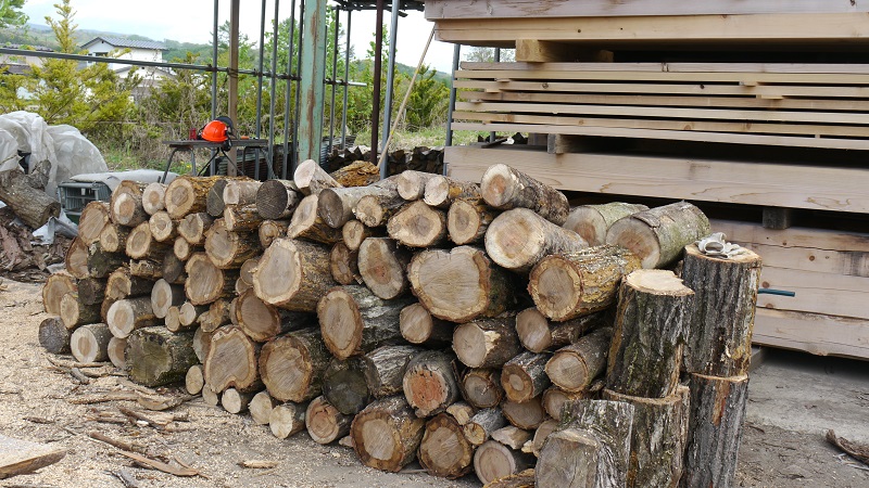薪丸太の玉切りが進みましたので、薪割り人待ちです。