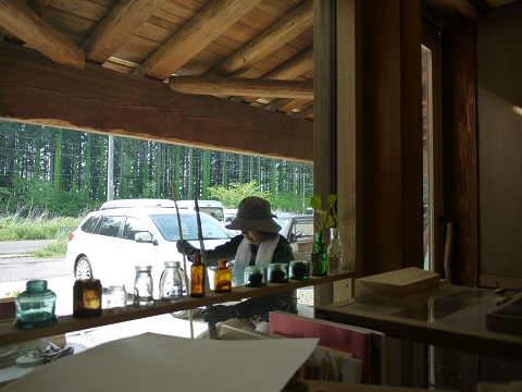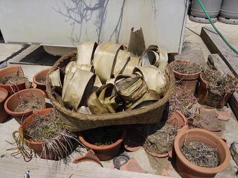 胡桃の木の皮で籠を編まんとして、皮むきに勤しむ専務でした。