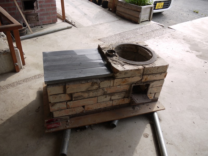 壊れてて崩れた竈を現状回復修理しています。現在計画中のゲストハウスへのサプライズの予定でした。