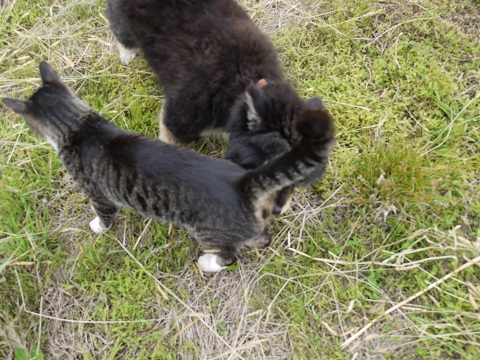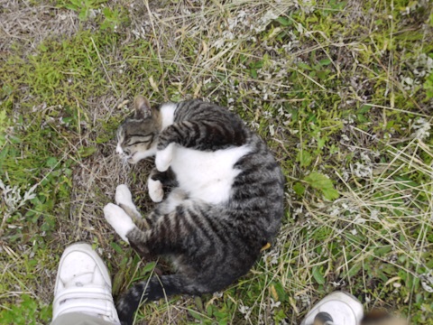 犬の散歩に付いて来る猫のタイガ!放浪の旅によく出て行きます。