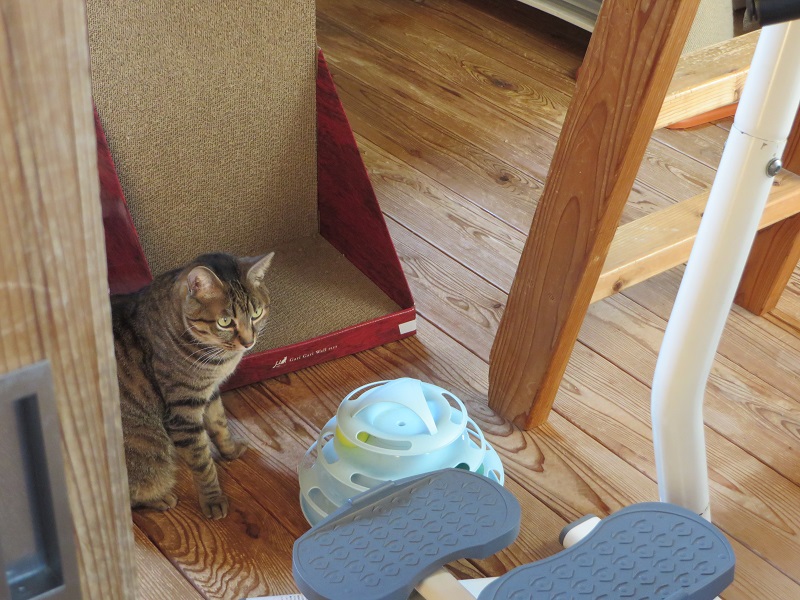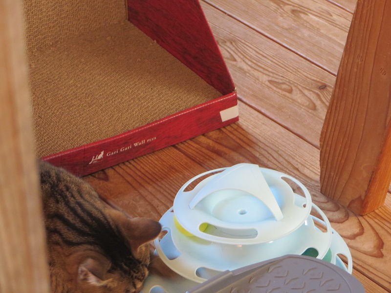 なかなか警戒して手を出さなかった猫もとうとう手を出して遊び始めました。