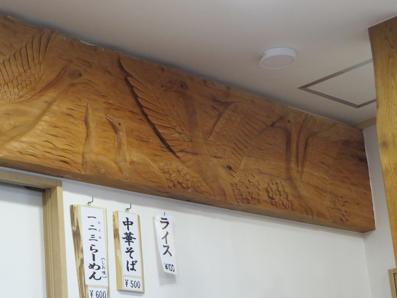 高松公園のすぐそばに、新店舗の食堂がオープンしました。「一二三」ひふみさんです。昼は昔懐かしの中華そばで夜は飲み食い処となりますが、その味付けは絶品でした。店内の彫刻も素晴らしいです。